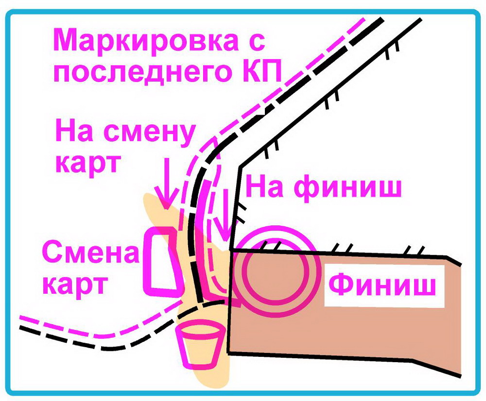 Участник, который идет на смену карт, заходит в правый коридор. Участник, который финиширует – в левый.