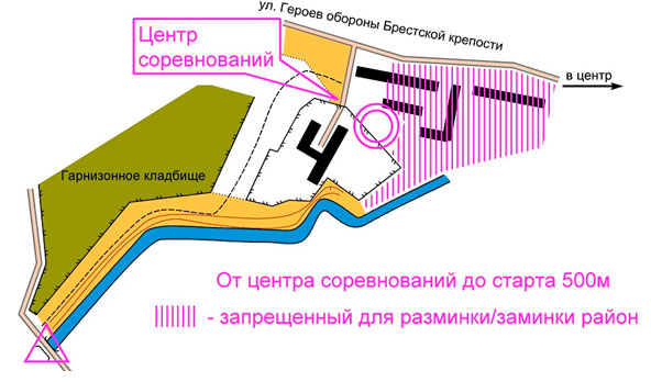Район соревнований с юга ограничен трассой Брест-Минск, с запада –железной дорогой, с севера и востока – полем и частными застройками.