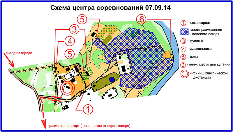 Старт выносной – 800 м от центра соревнований. Движение на старт по разметке от ворот лагеря. От старта до пункта К -50 м.