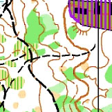 Среднепересеченная, с крупными формами холмистого рельефа (перепад на склоне до 40 метров). Сеть дорог и тропинок развита хорошо. Лес преимущественно смешанных пород, от очень хорошей до плохой проходимости. На местности имеются заросшие кустарником старые вырубки, также в некоторых местах ведется санитарная чистка леса.