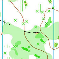 Растительность в карте отображена по состоянию середины лета, поэтому видимость и проходимость в местах с лиственными породами деревьев и подлеском в настоящее время значительно лучше